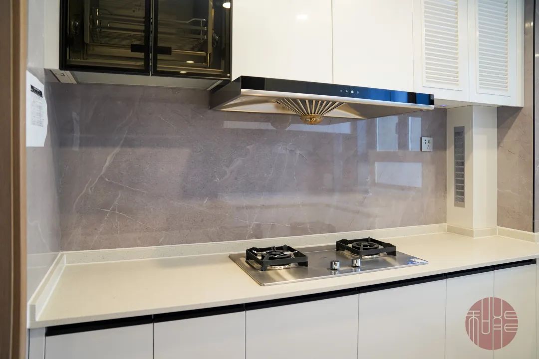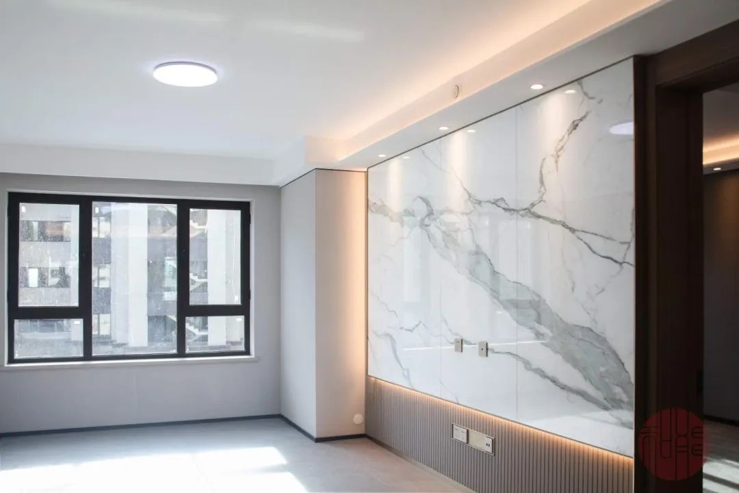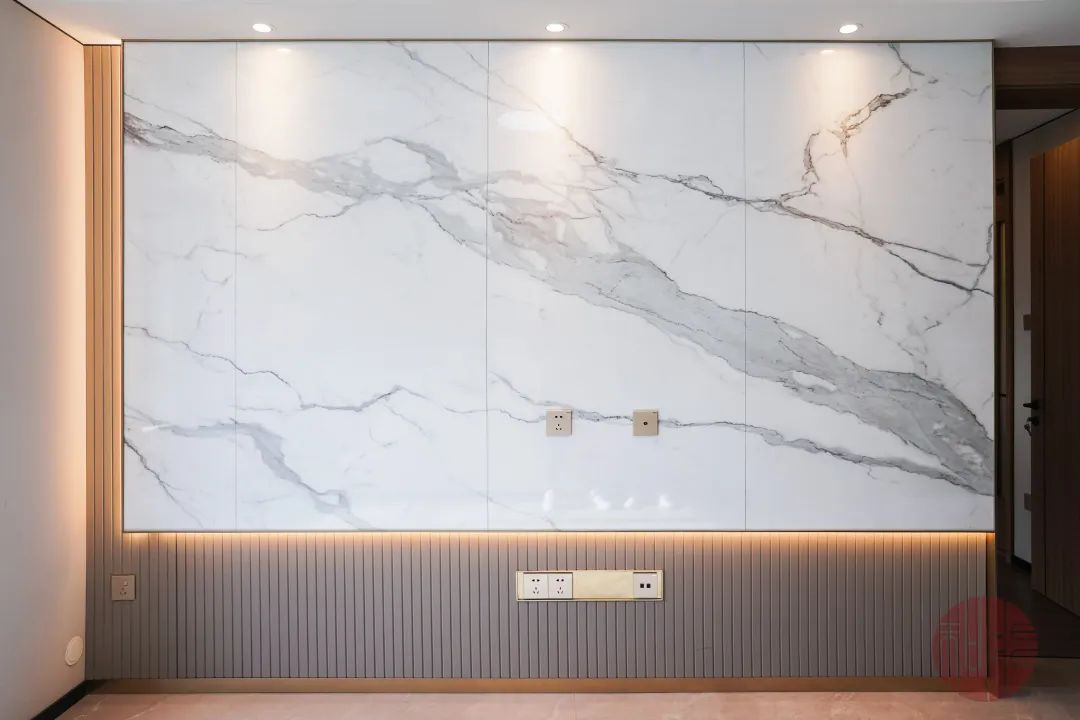 在樣板間,即便是簡單的墻板也可以千變萬化,例如進入龍湖云河硯樣板間的第一眼,客廳背景墻即是整個房間的點睛之筆,仿天然紋理的客廳背景墻,在豐富了感官體驗的同時,也為客廳融入了自然的氣息。這種和能墻板既大氣,又顯得上檔次,與現今流行的巖板背景墻有著異曲同工之妙。